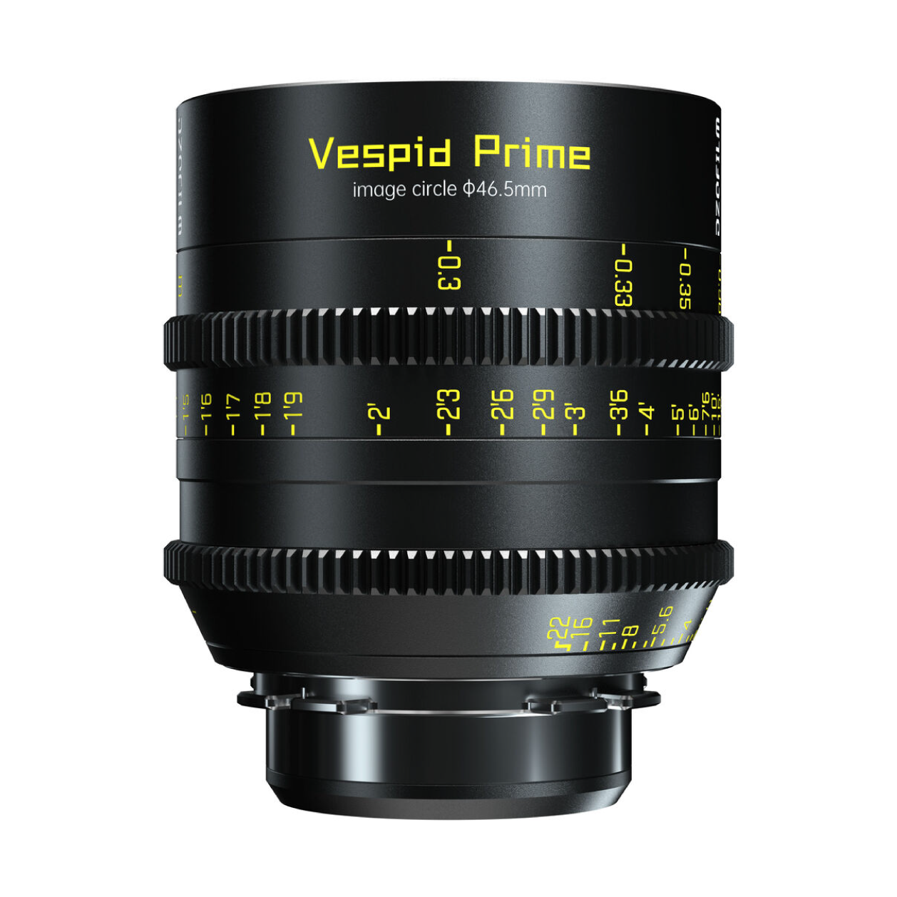 El VESPID Prime 35 mm T2.1 (PL) es la focal estándar por excelencia en cine: cubre full-frame (Ø 46,5 mm), pesa apenas 834 g e integra un frontal de 80 mm con rosca 77 mm. Su diafragma de 16 hojas abre a T2.1 para un bokeh cremoso, mientras el recorrido de enfoque de 270° con engranajes 0,8 MOD acerca hasta 30 cm con respiración prácticamente imperceptible, ideal para gimbals, drones o cámara al hombro con un look cinematográfico natural.